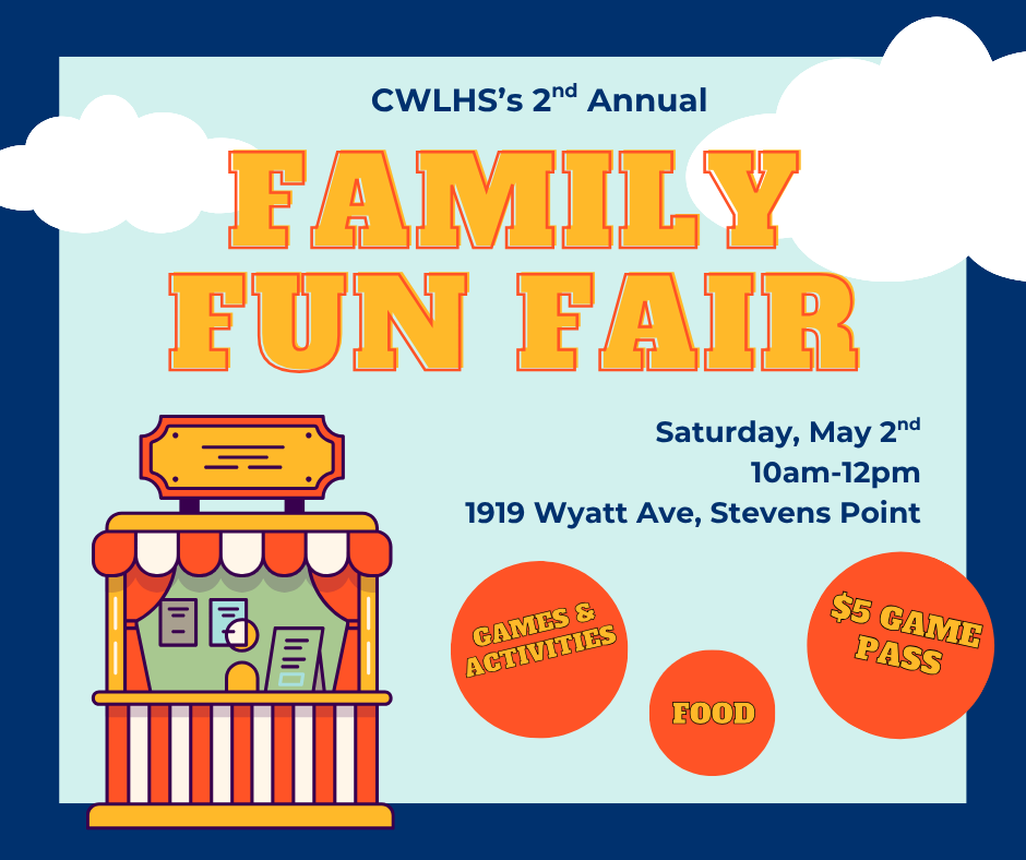 Join us for our 2nd annual CWLHS Family Fun Fair! Hosted at St. Paul Lutheran Church in Stevens Point, this event includes delicious food, free crafts for kids of all ages, and games galore! For $5, kids receive a game pass that allows them to play as many games as they'd like (and win prizes!). The best part? All money raised will go toward helping our school get ready for students this coming fall! See you there!